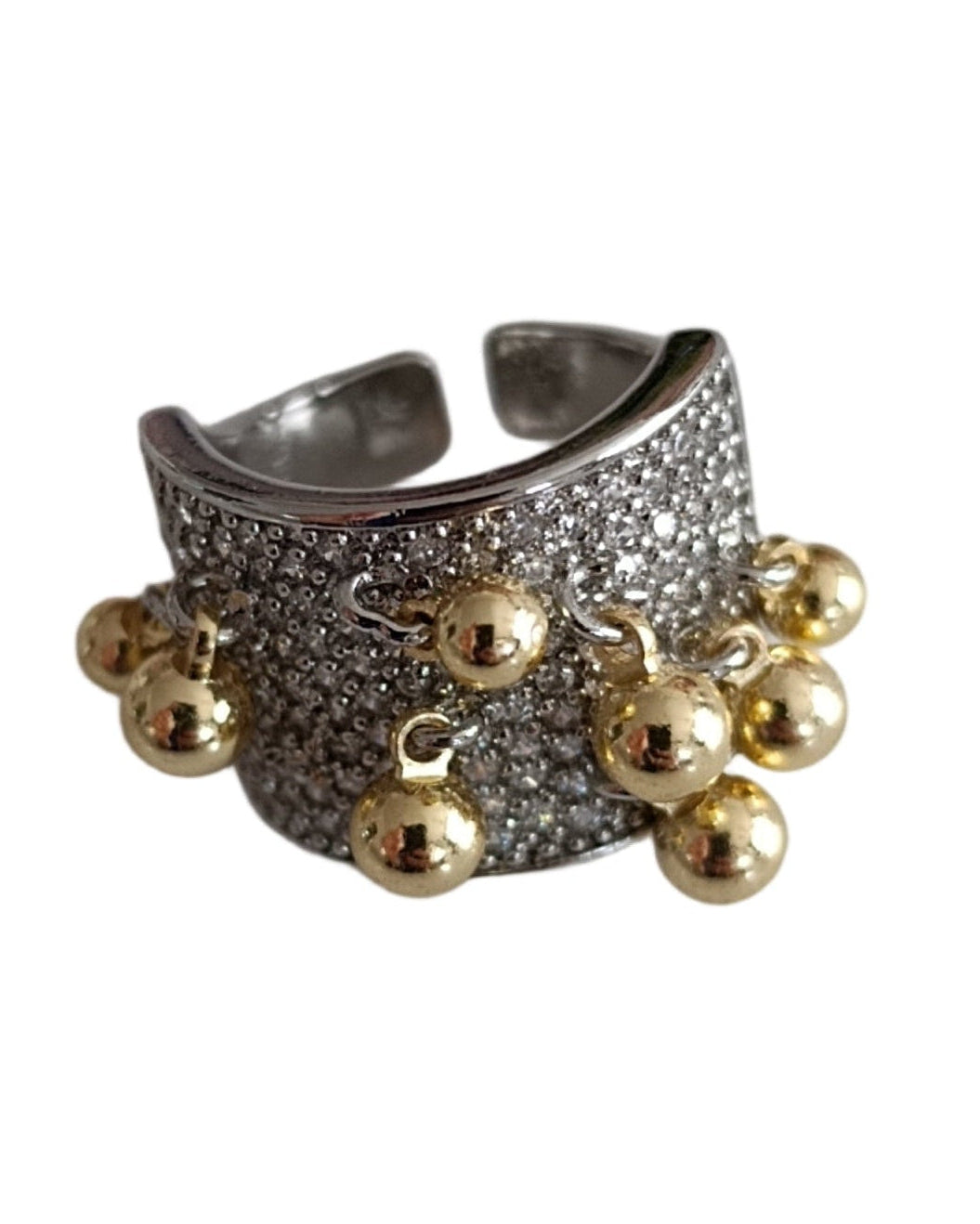 Shadiva Gold Silver Full Zirkon Taşlı Topçuk Detay Yüzük