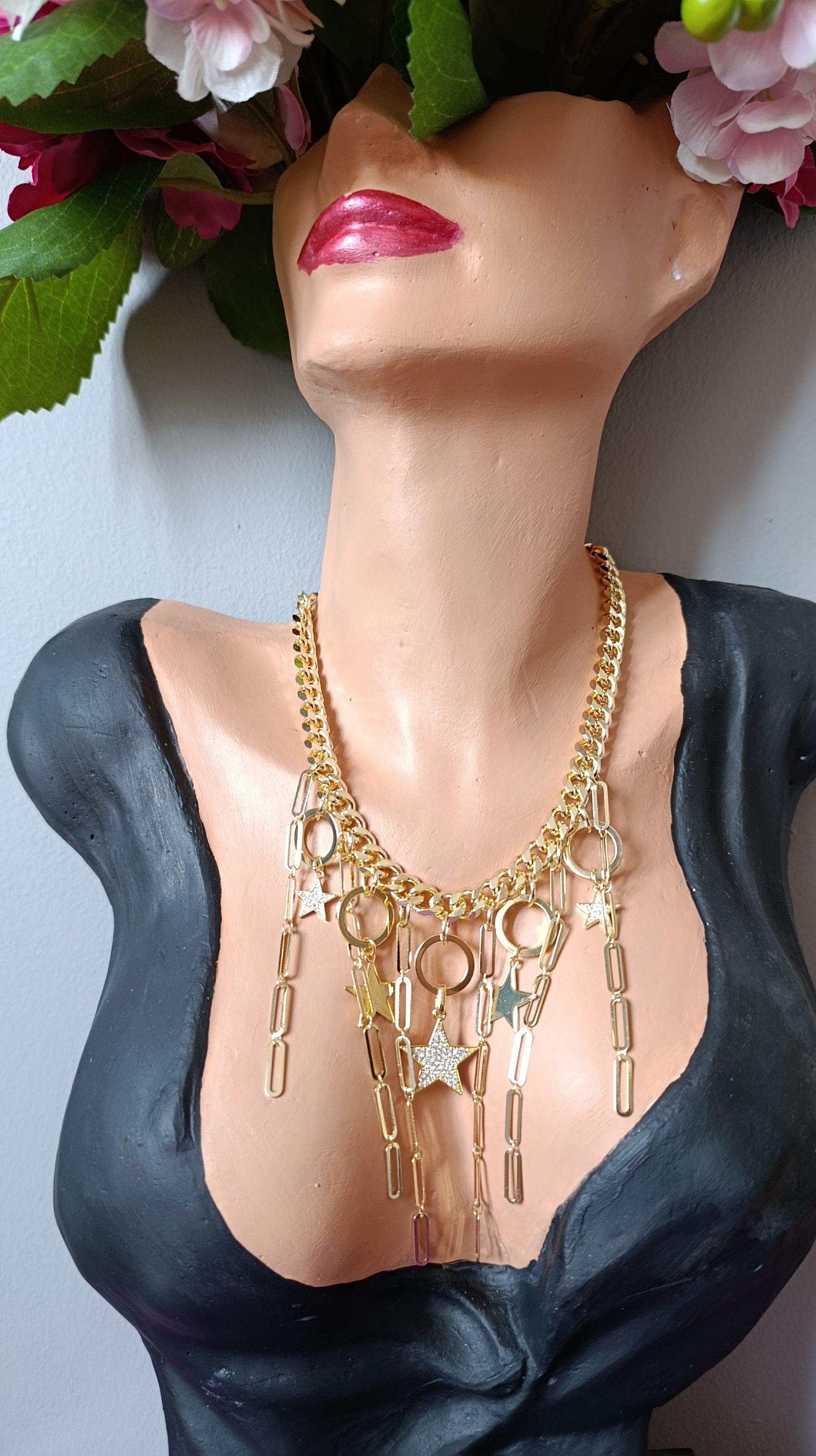 • Gök cisimlerinden ilham alınarak tasarlanmış zarif yıldız ve ay detaylı kolye.