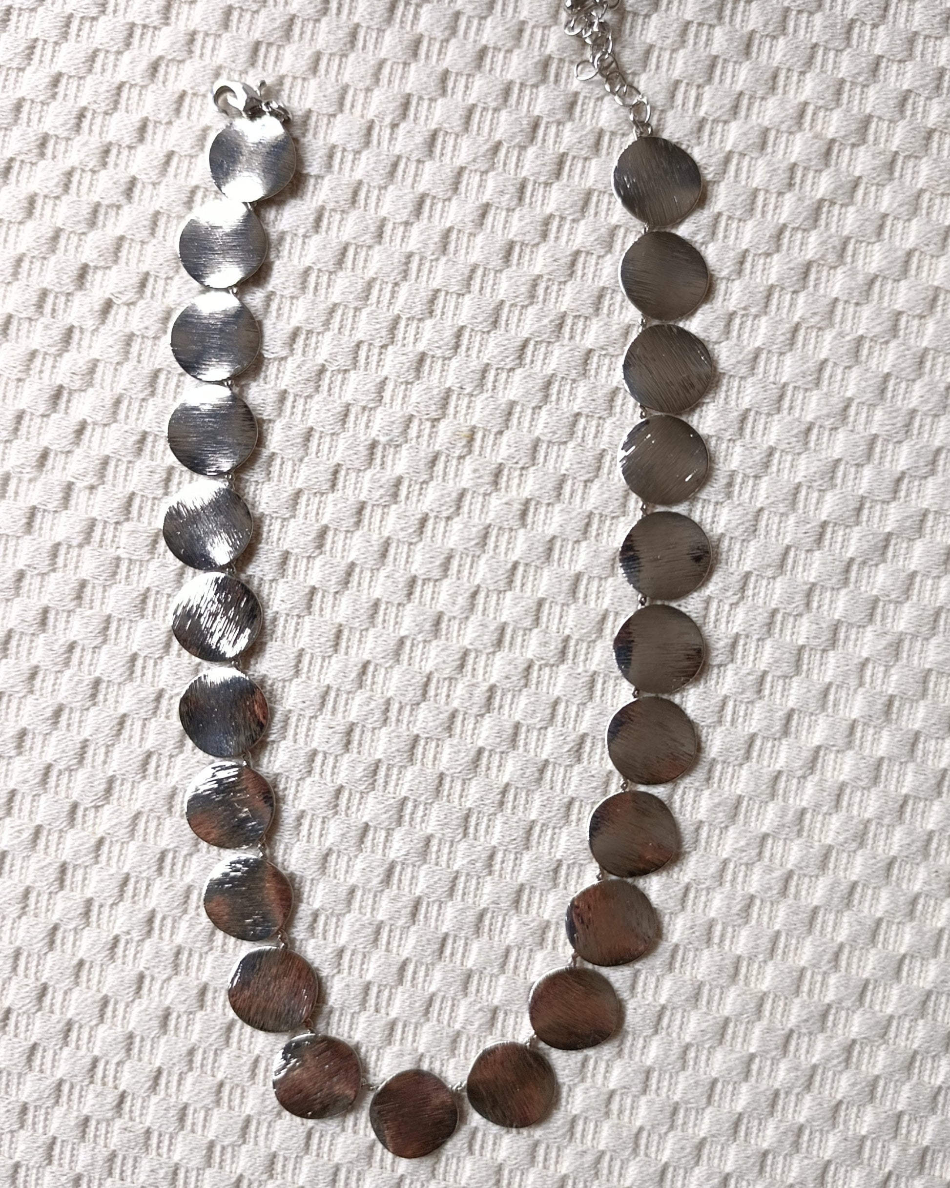 Shadiva Gümüş Renk Dövme Metal Pul Kolye