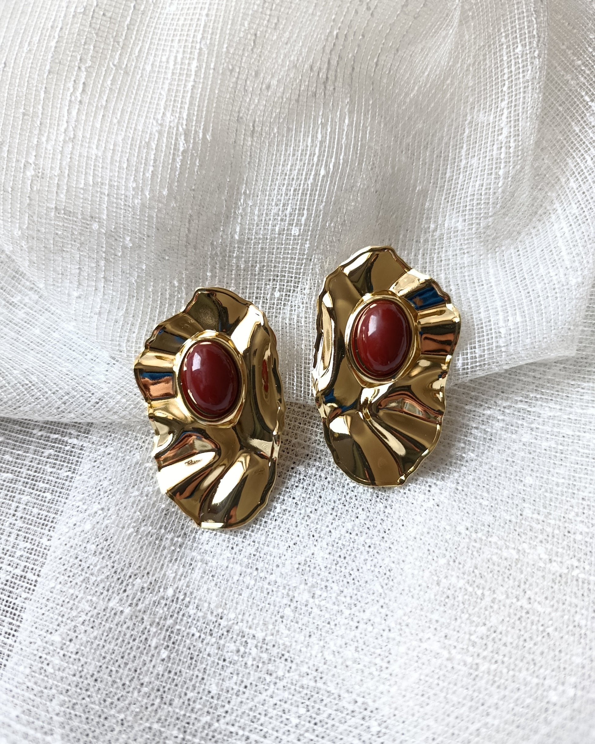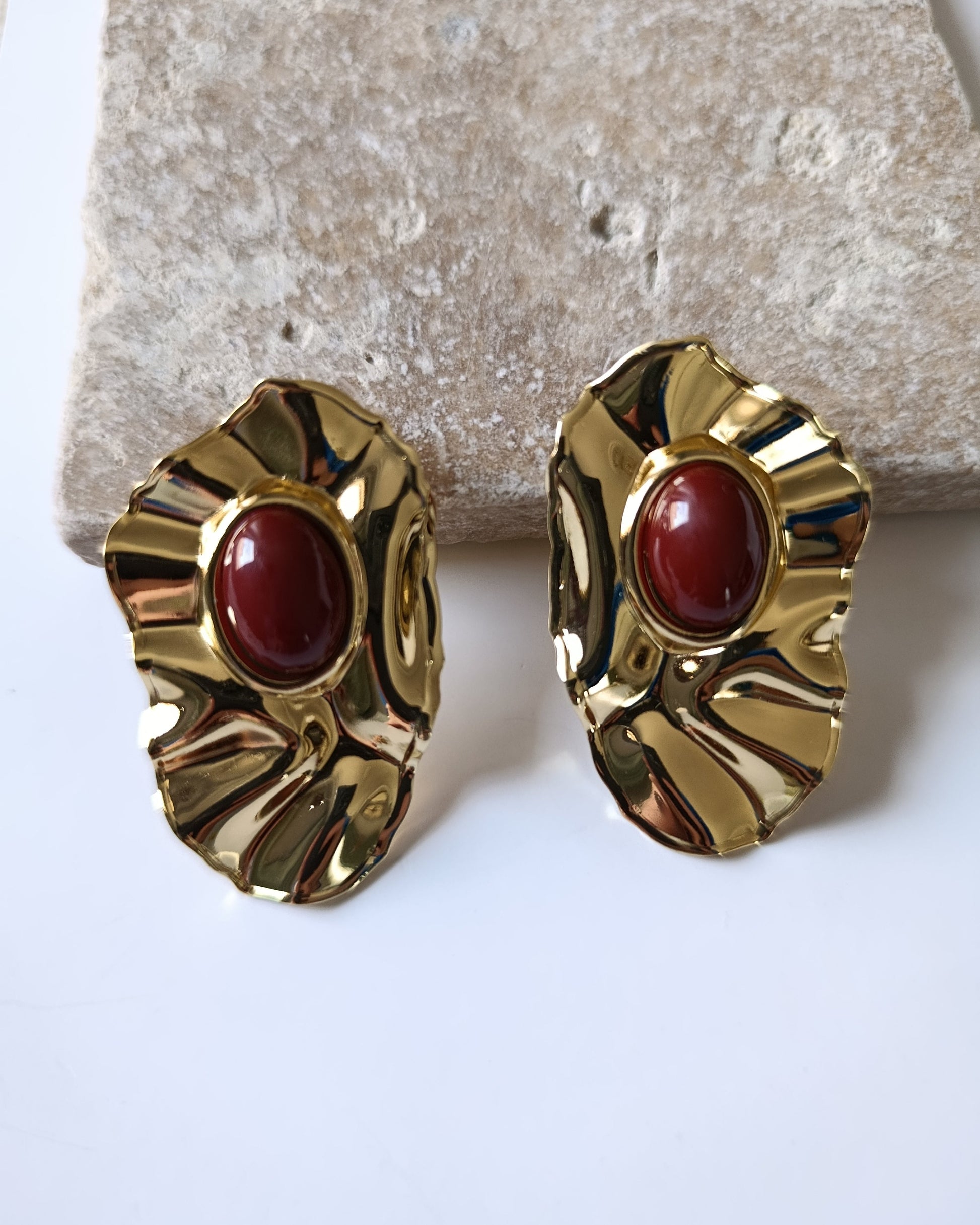 Shadiva Marka Model Kahverengi Taşlı Gold Plaka Küpe