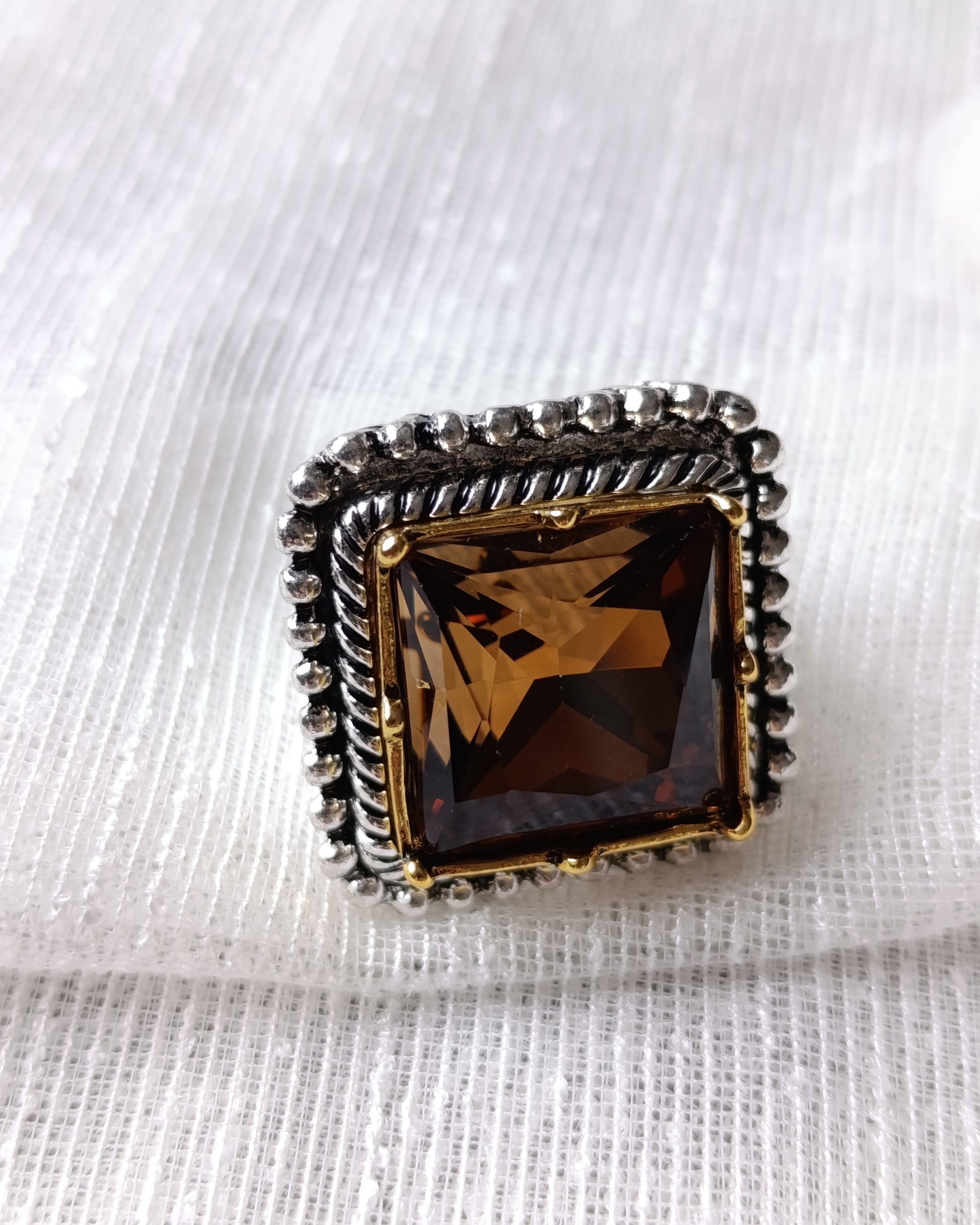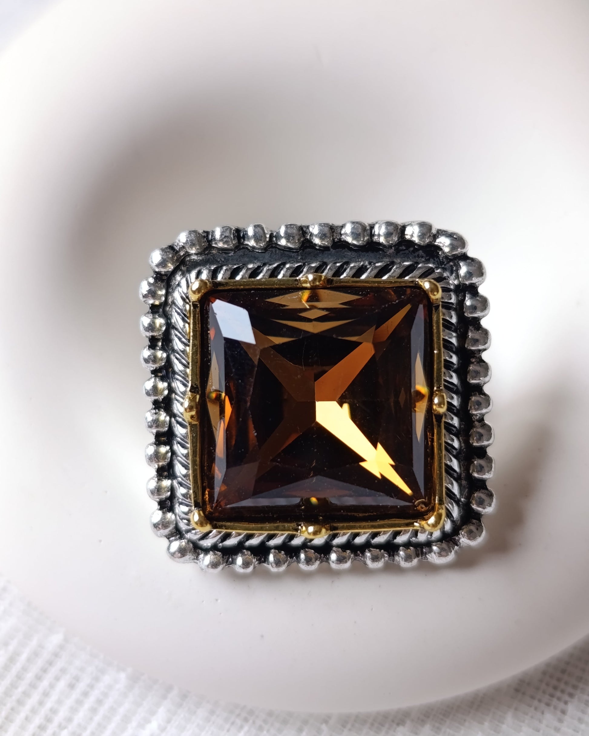 Shadiva Zra Model Kesme Bal Rengi Taşlı Silver Yüzük